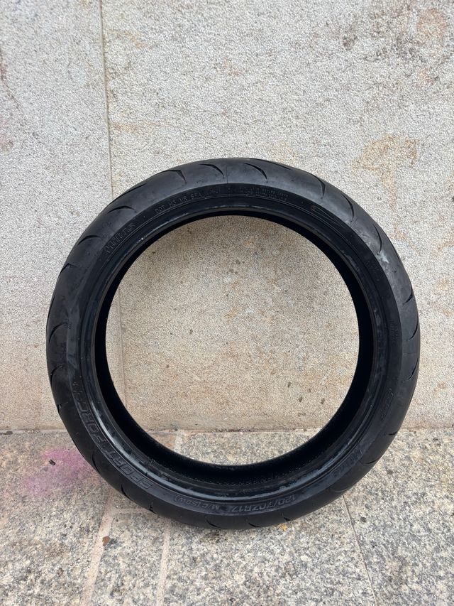 Neumático delantero Mitas Sport Force. - Medida: 120/70 ZR17 M/C (58W). - Tipo: Sport Touring.