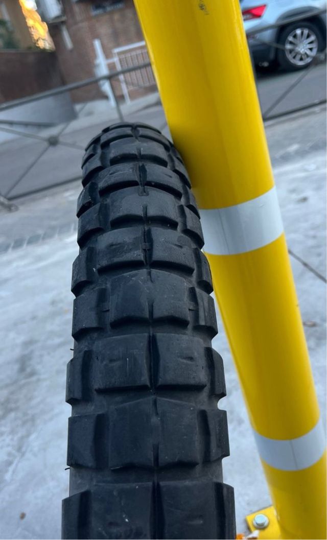 Está en perfecto estado, le queda un 70 % de vida aprox. Neumatico perfecto para un uso mixto.