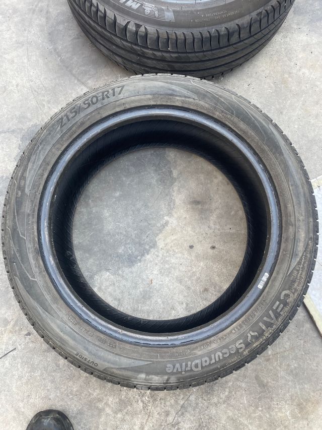 Vendo dos neumáticos usados 215/50 R17 en buen estado. - Se aprecian algunos signos de desgaste. - Ideales para quien busca una opción económica.