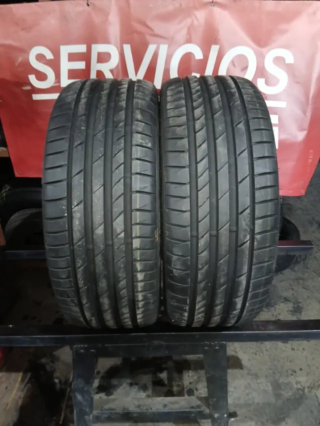 Detalles del productoVendo pareja de neumáticos en buen estado.Marca KUMHO.Fecha de fabricación del 2024 las dos unidades.Uno de los neumáticos tiene un parche ya reparado.Precio 150 euros con montaje equilibrado y válvula.Taller Dagoma Sport Monserrat