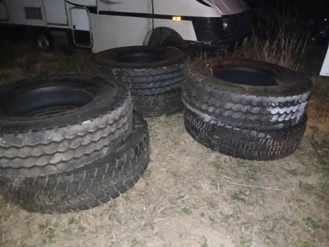 Neumáticos de camión. En perfecto estado al 90x100. Provienen de un camión siniestrado. - Tread pattern visible. - Suitable for heavy-duty vehicles.