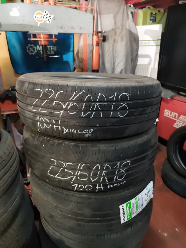 Detalles del productoSe venden tres neumáticos usados Dunlop 225/60R18 100H. Están en buen estado, aunque presentan señales de uso.