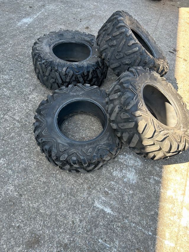 Se venden 1 juego delantero maxxis bighorn AT25x8R12 algo menos de medio uso, y 1 juego de gomas maxxis bighorn 2.0 traseras AT25x10R12, entrega en mano .
