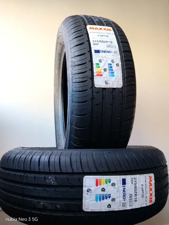 Detalles del productoDos neumáticos Maxxis Premitras HP5 en medida 215/60ZR16 con índice de carga 99W. COMPLETAMENTE NUEVOS* A ESTRENAR 100% DE VIDA ÚTIL (125€ en la Página.)