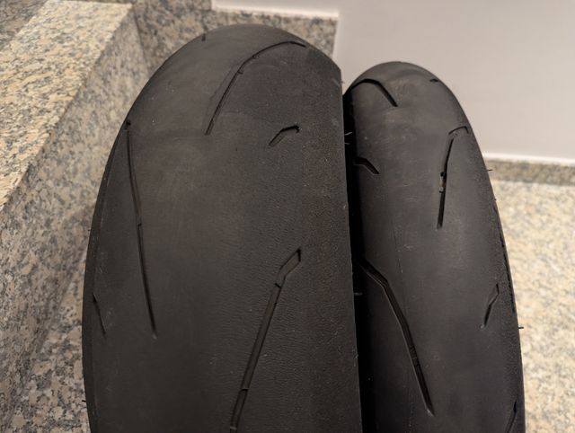 Detalles del productoDos neumáticos Michelin Power GP 2, usados. Medidas 120/70 y 190/55. Diría que aproximadamente a la trasera le queda un 30% y a la delantera un 40%. De ahí el precio, fecha de fabricación de 2023. Posibilidad de envío o entrega en mano.