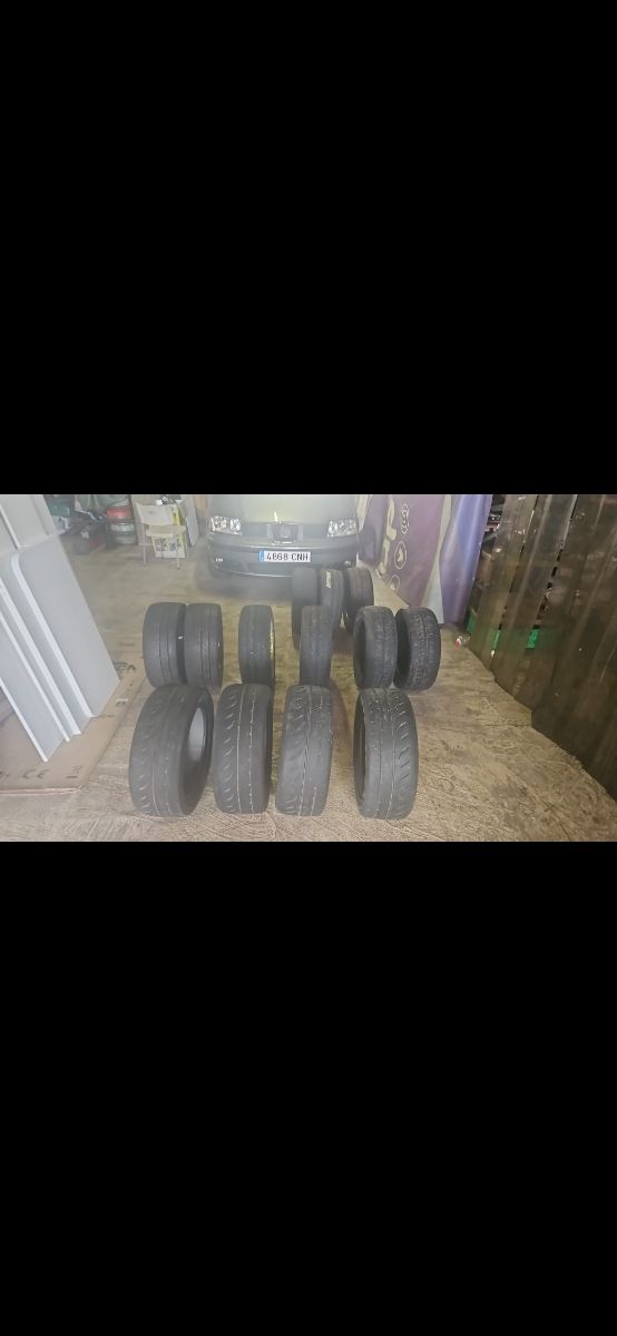 Detalles del productoVendo lote de 13 neumaticos duros, medios y blandos algunos al 80% otros para entrenos, entre ellos estan MRF, COPPER TOYO,en 195x50x15.