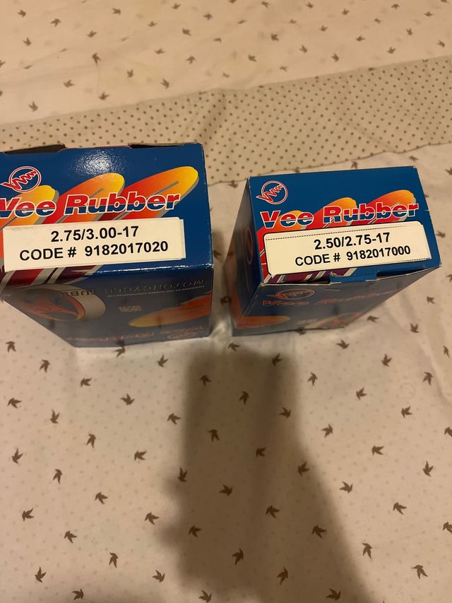 Detalles del productoVendo dos neumáticos Vee Rubber nuevos. Están en sus cajas originales. Delantero y trasero