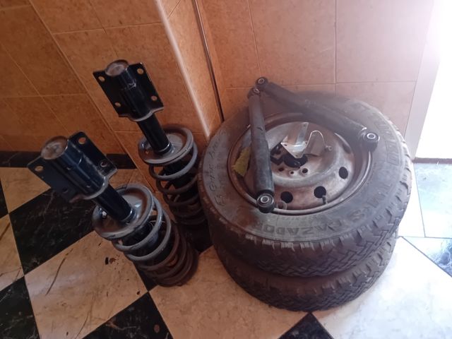 Conjunto de neumáticos y amortiguadores para coche. - Dos neumáticos. - Dos amortiguadores con muelle.