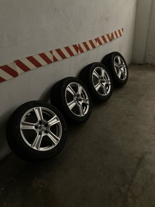 Detalles del productoLlantas aleación 16” para Mazda’s (cinco tuercas) con neumaticos M+S (aptos para ser utilizados en nieve sin cadenas) Hankook winter i*cept RS2 medidas 205/50 R16 88H en muy buen estado, ideales para circular en condiciones climatológicas adversas.