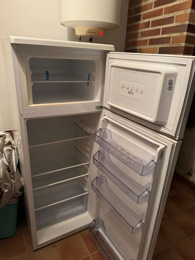Se vende nevera blanca con congelador en la parte superior y frigorífico en la inferior.