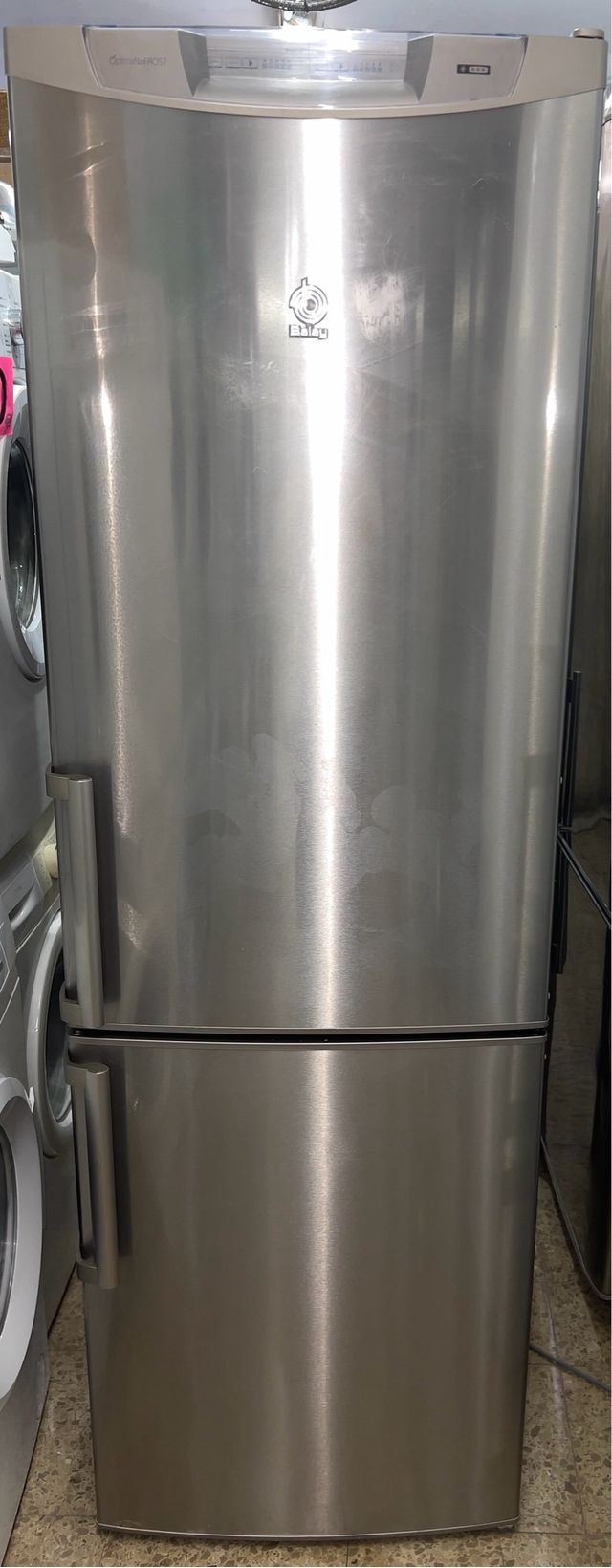 Detalles del productoNevera combi de la marca Balay con acabado en acero inoxidable.