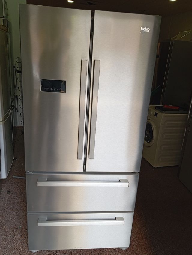 Detalles del productoNevera combi de la marca Beko con acabado en acero inoxidable.