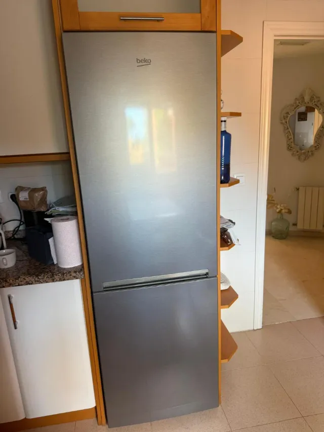 Detalles del productoNevera Beko de color plateado, con diseño moderno y elegante. En perfecto estado