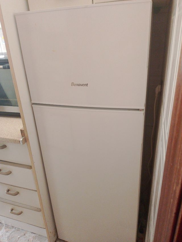 Nevera de dos puertas de la marca Benavent. - Color blanco. - Diseño moderno.
