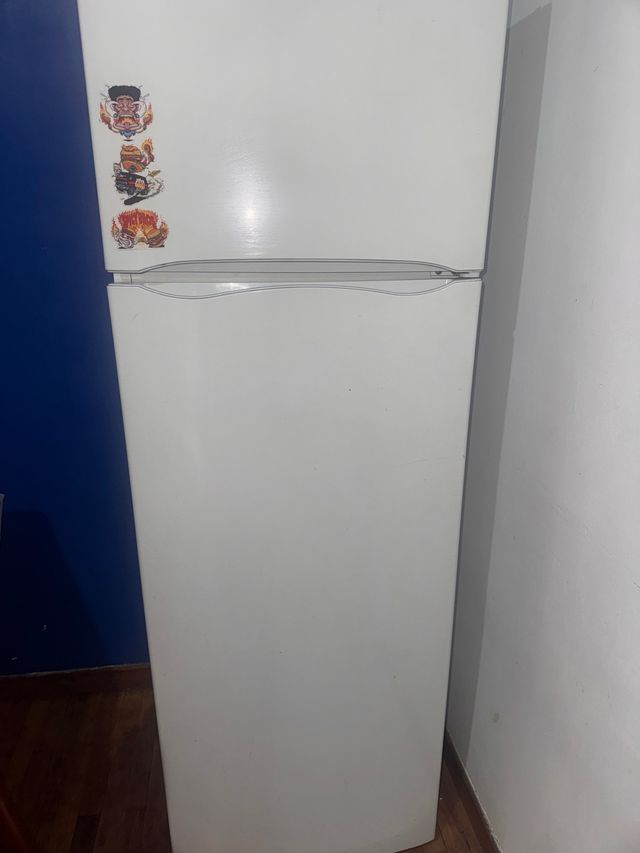 Nevera de color blanco. - Diseño de dos puertas. - Adhesivos decorativos incluidos.