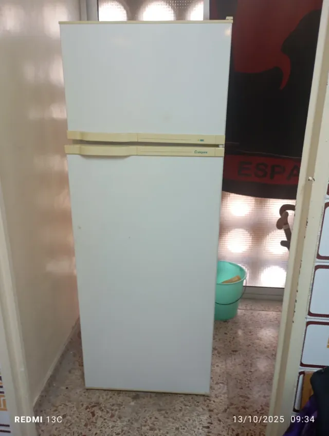 Nevera de color blanco con compartimento congelador. Precio algo negociable - Diseño vertical. - Tiradores en color crema.