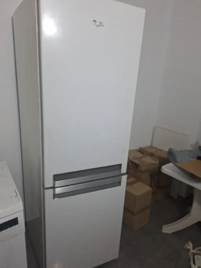 Detalles del productoNevera de color blanco con el logo de Whirlpool.