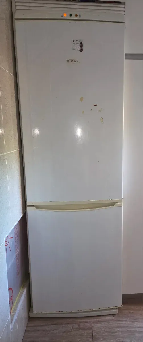 Detalles del productoNevera de color blanco de la marca BLUESKY.