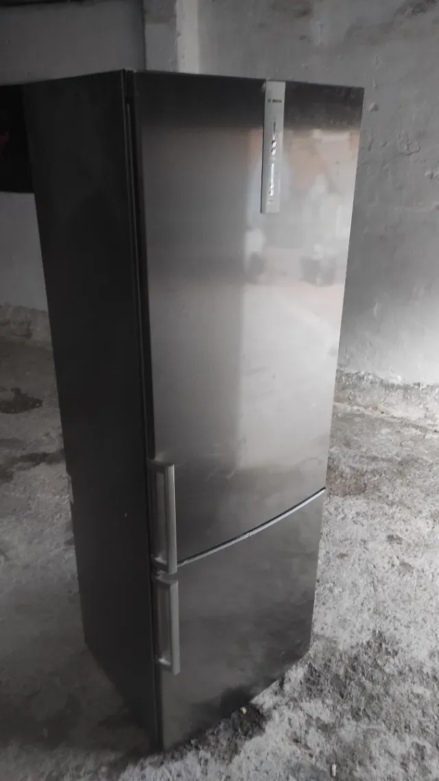 Detalles del productoNevera de la marca Bosch, con acabado en acero inoxidable.