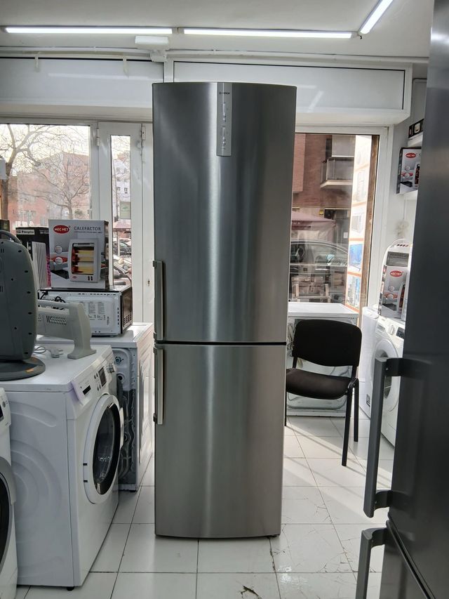 Detalles del productoNevera combi de la marca Bosch. Diseño moderno en acabado plateado.
