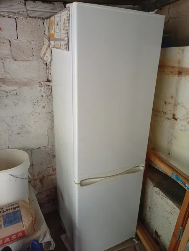 Detalles del productoNevera blanca de dos puertas con congelador.