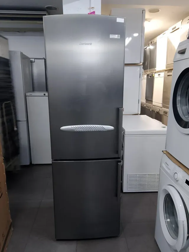 Nevera combi de color plateado. - Diseño moderno. - Tirador integrado.