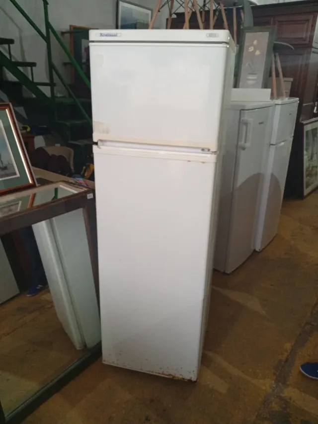 Nevera combi de color blanco. - Congelador en la parte superior. - Frigorífico en la parte inferior.