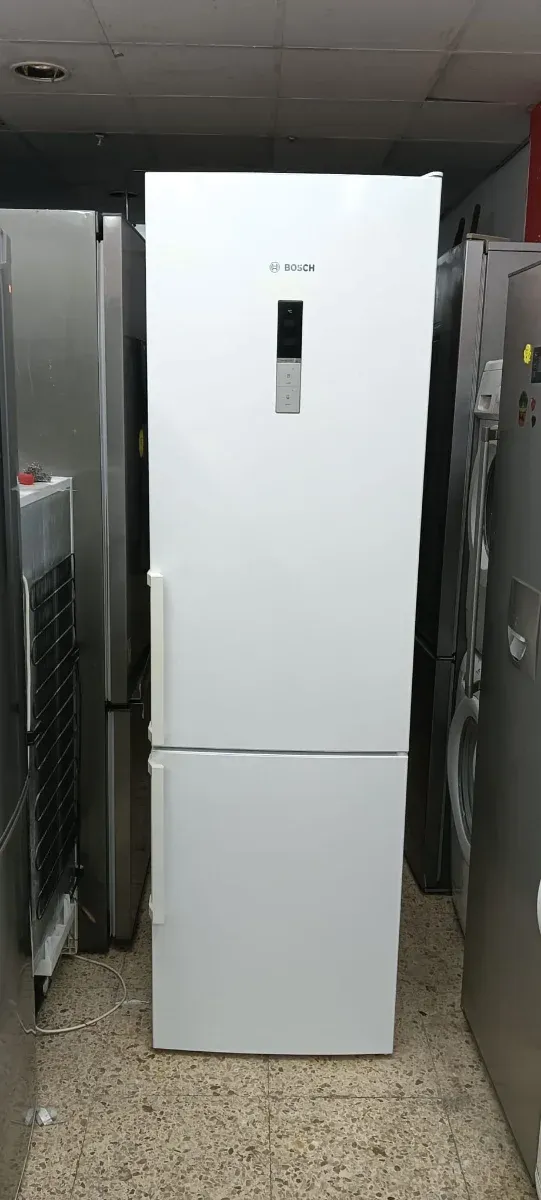 Nevera de la marca Bosch en color blanco. Diseño moderno con pantalla digital.