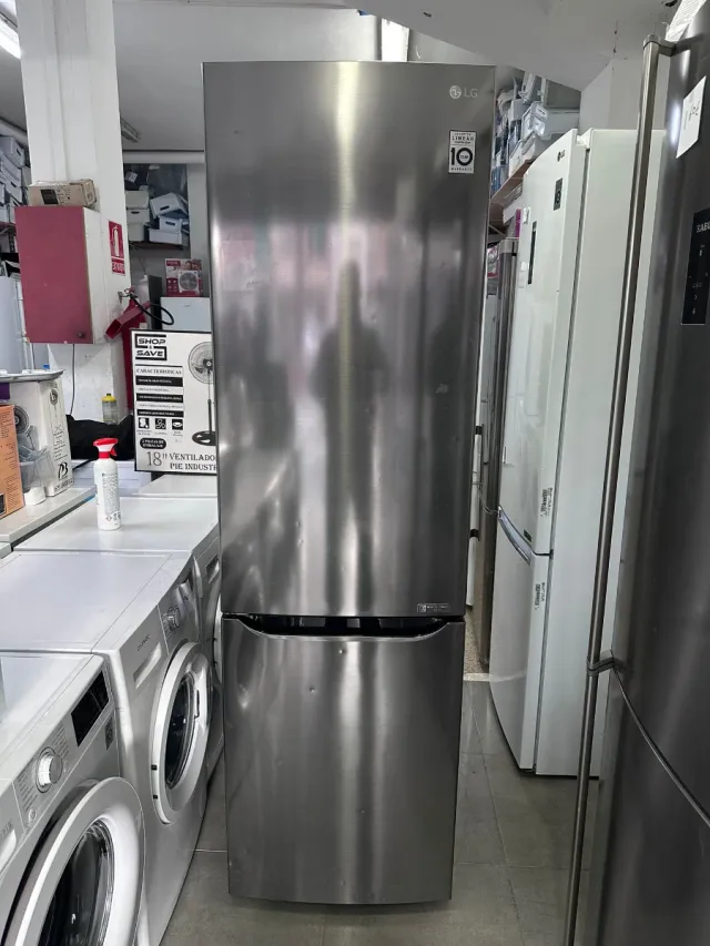 Detalles del productoNevera combi de acero inoxidable con congelador inferior.