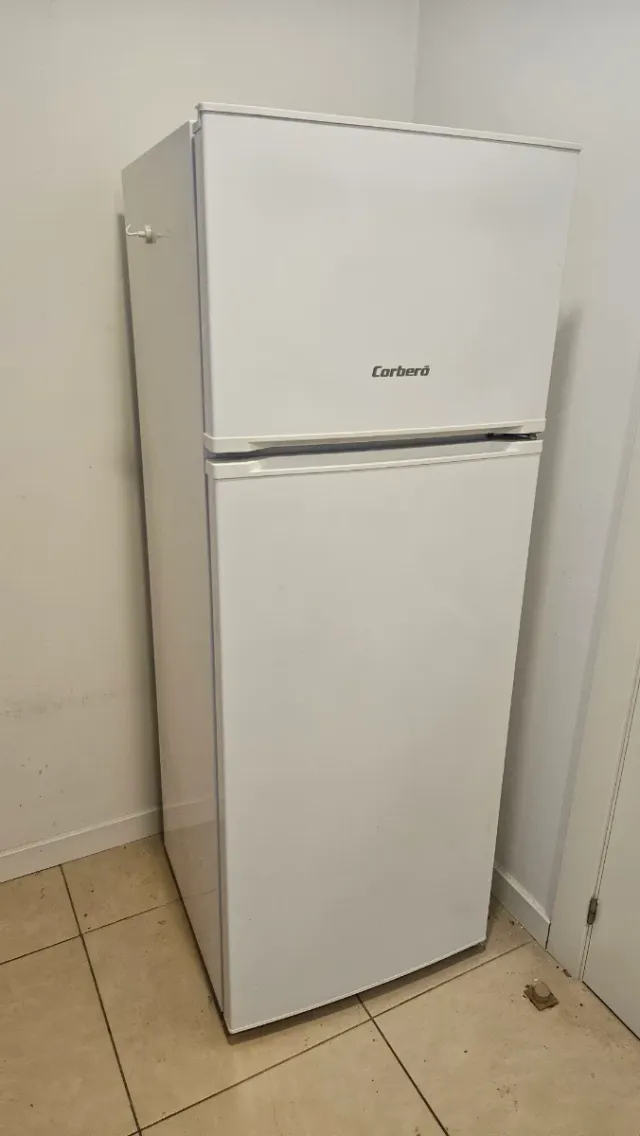 Nevera Corberó de color blanco. - Diseño de dos puertas. - Marca Corberó.