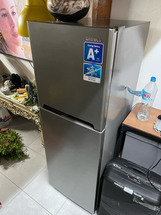 Detalles del productoNevera Daewoo de tamaño compacto, ideal para espacios reducidos. Cuenta con etiqueta de eficiencia energética A+ y tecnología No-Frost.