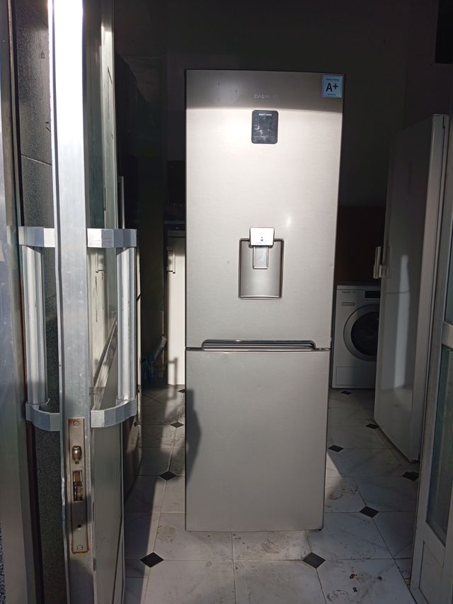 Nevera Daewoo plateada con dispensador