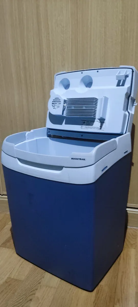 Detalles del productoNevera eléctrica portátil de la marca Rocktrail, ideal para el coche o viajes.