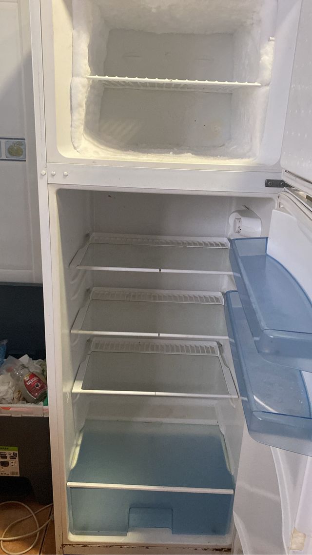 Nevera usada que enfría perfectamente. - Congelador superior con escarcha. - Compartimentos de refrigeración amplios. - Cajón inferior para verduras.