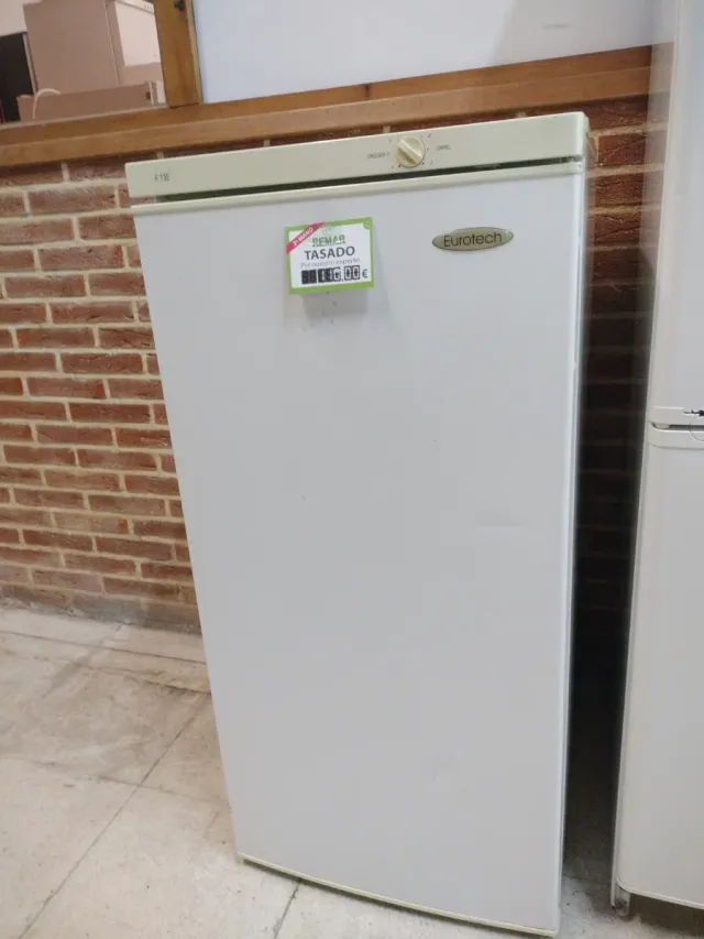 Nevera vertical de la marca Eurotech, modelo F-135. Porte - Color blanco. - Diseño compacto.