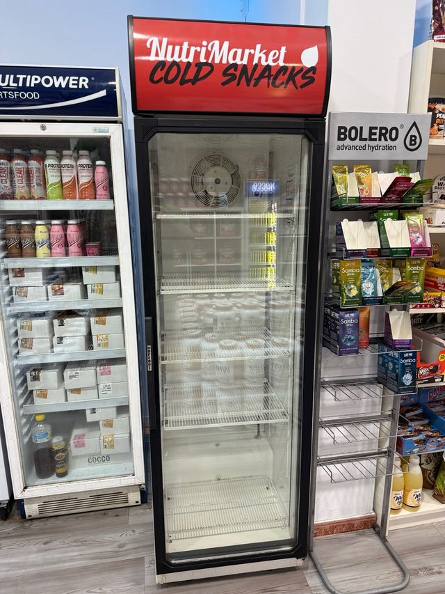 Nevera expositora de gran almacenamiento. - Diseño vertical con puerta de cristal. - Iluminación interior. - Estantes ajustables.