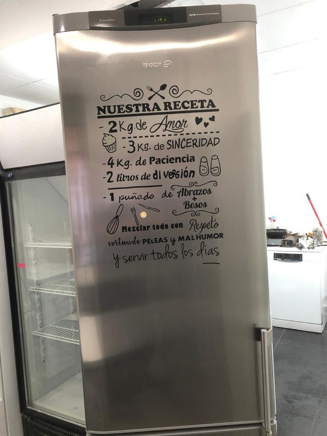 - Decoración Nuestra Receta con texto en vinilo.
