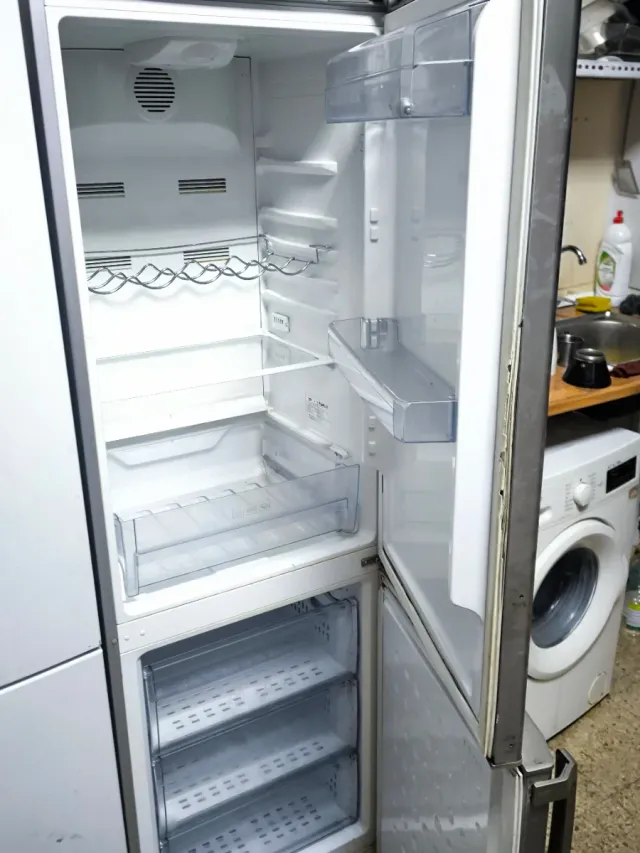 Detalles del productoNevera Haier de dos puertas con una altura de 1.70 metros. Cuenta con varios cajones en la parte inferior.