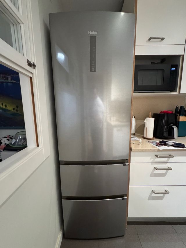 FrigorÃfico Haier A3FE835CGJE en acero inoxidable, con gran capacidad, tecnologÃa No Frost (olvÃdate de la escarcha) y motor inverter ultra silencioso. Mantiene los alimentos frescos por más tiempo gracias a sus cajones especiales y control de humedad. Ideal para familias y cocinas modernas. Funcionando perfectamente y muy bien cuidada Medidas del producto