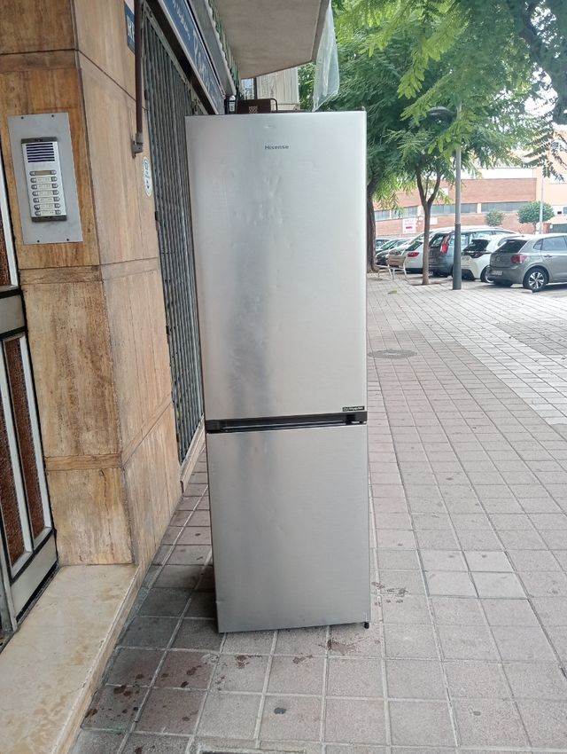 Detalles del productoNevera de la marca Hisense, ideal para mantener tus alimentos frescos.