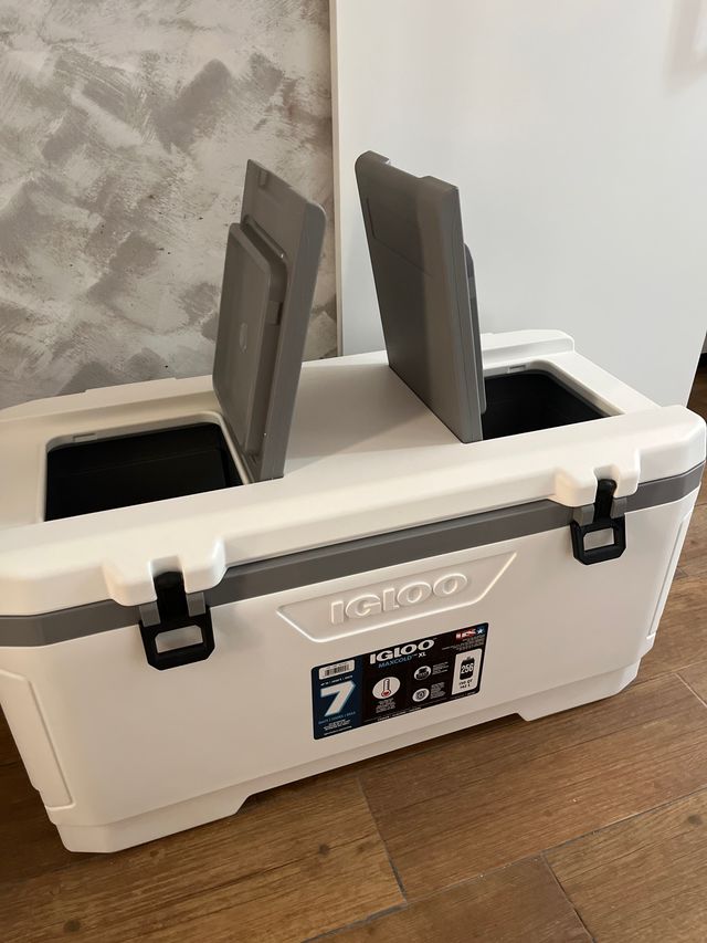 Detalles del productoNevera Igloo de color blanco con detalles grises. Perfecta para mantener tus bebidas y alimentos fríos.