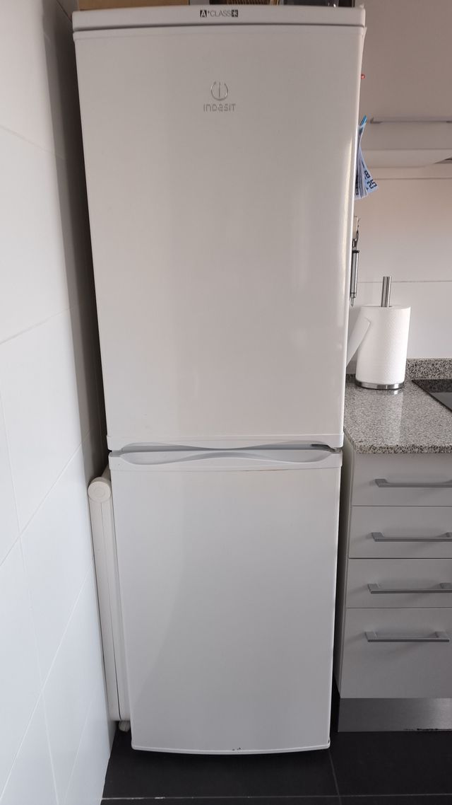 Detalles del productoNevera Indesit de color blanco, con 5 años de uso.