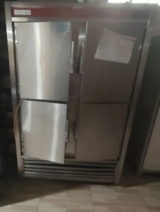 Nevera industrial de acero inoxidable con cuatro puertas. - Diseño robusto y duradero. - Acabado en acero inoxidable.