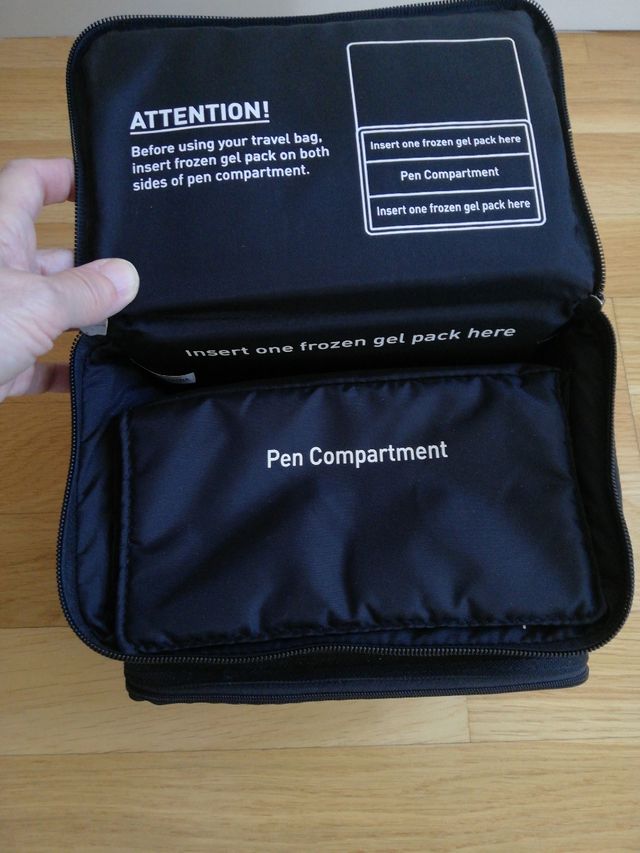 el compartimento para las medicinas, algo más pequeño, debido al acolchado.
