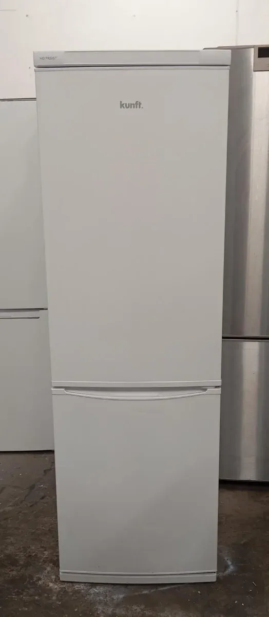 Nevera de la marca Kunft en color blanco. Cuenta con tecnología No Frost. - Diseño moderno y elegante. - Puerta superior y cajón inferior.