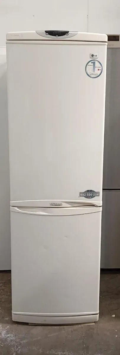 Detalles del productoNevera marca LG de color blanco con una altura de 188cm y un ancho de 60cm.