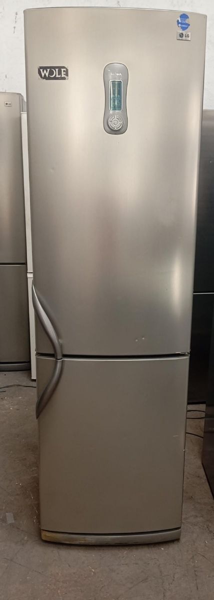 Nevera LG de 2 metros de altura y 60 cm de ancho. Diseño moderno y elegante. - Color plateado. - Dos puertas. - Panel de control digital.
