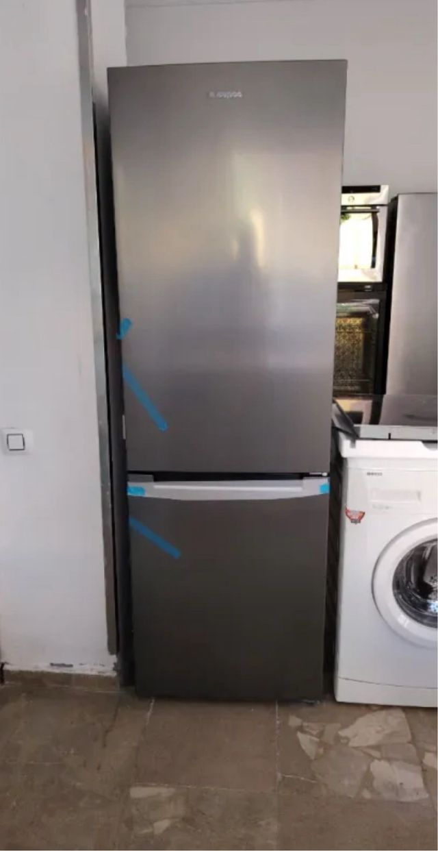 Detalles del productoNevera de acero inoxidable con congelador inferior. Diseño moderno y elegante.