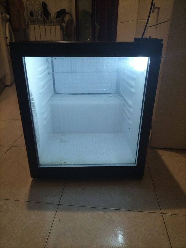 Nevera compacta ideal para espacios reducidos. - Diseño moderno y funcional. - Puerta de cristal transparente. - Iluminación interior.