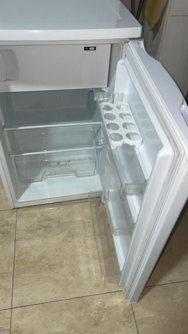 Detalles del productoNevera compacta de color blanco, ideal para espacios reducidos. Cuenta con compartimentos interiores para organizar tus alimentos.